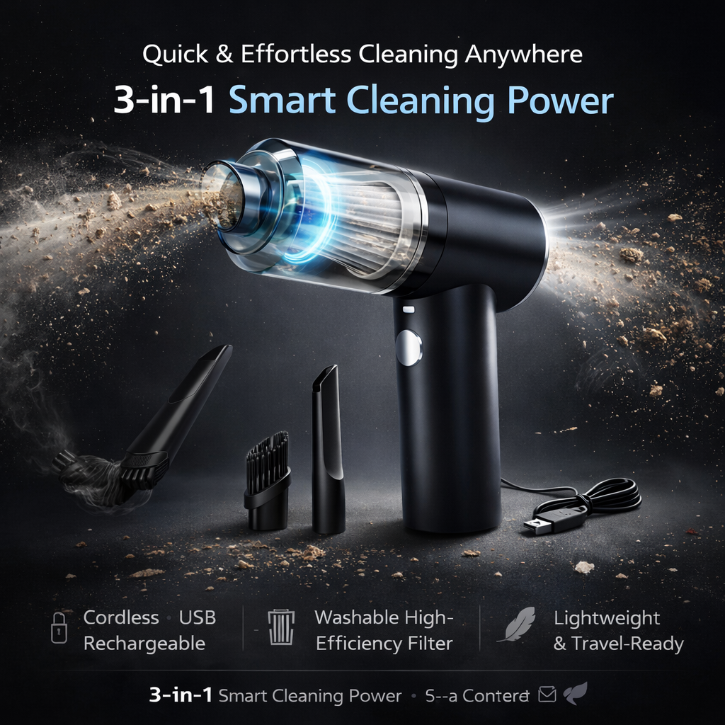 • Smart 3-in-1 Cleaning Design – Works as a vacuum cleaner, blower, and dust collector in one compact device. Easily blow out dirt from corners or collect dust in seconds for a complete clean.